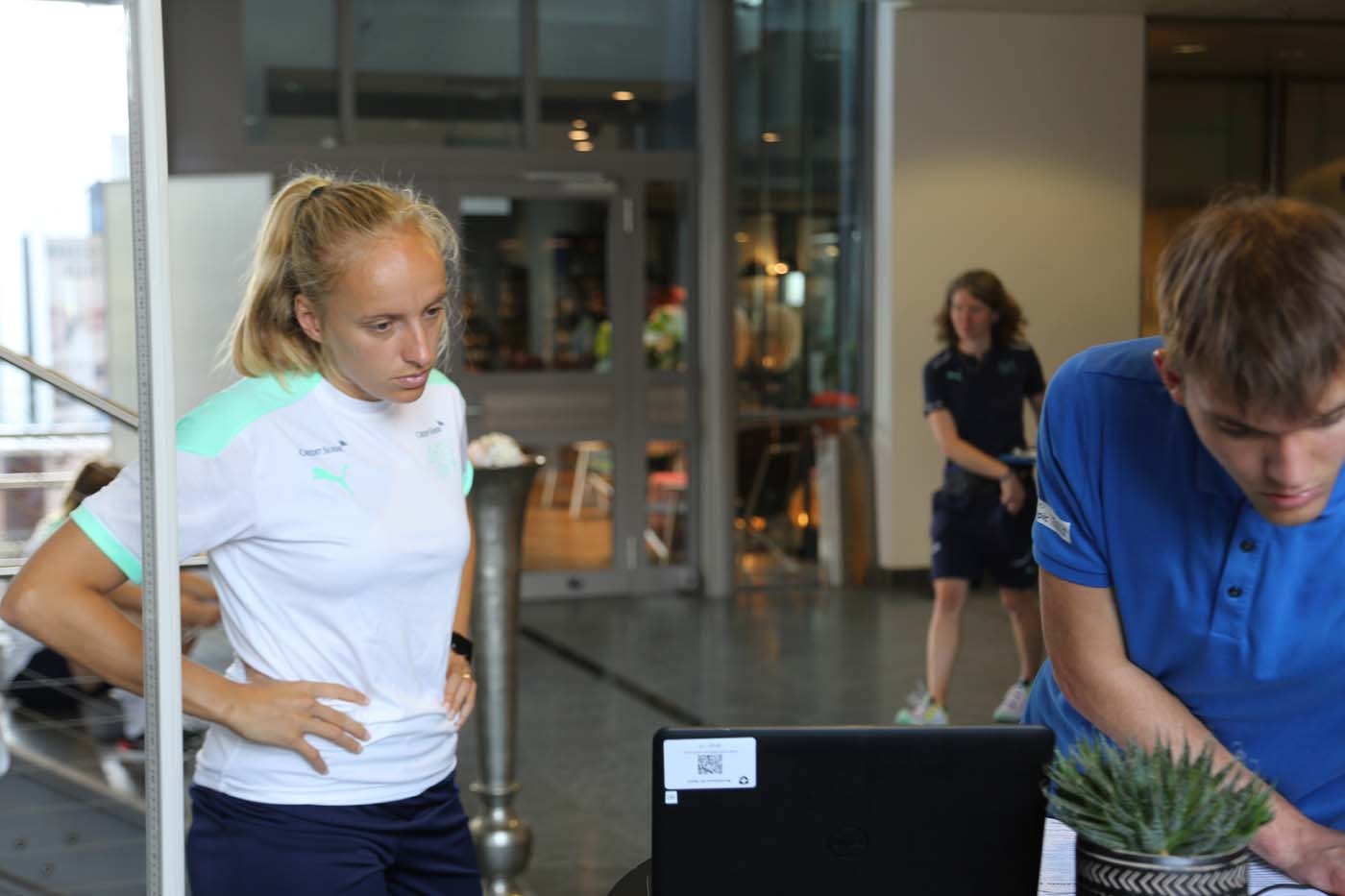 Das Sportphysiologie-Team um Dr. med. Markus Tschopp und Hélène Maystre, die Sportartverantwortliche für Frauenfussball, testete im April die Explosivität der Schweizerinnen – ein zentrales athletisches Element im Spitzenfussball – mittels verschiedenen Sprungkrafttests auf Kraftmessplatten. In einem zweiten Testfenster wurde Mitte Juni die Wirkung der daraus abgeleiteten individuellen Trainingsempfehlungen festgestellt. «Die Werte der Spielerinnen sind erfreulich, die Tendenz der Resultate zeigt klar nach oben. Das Nationalteam ist hinsichtlich Turnierstart schnellkräftiger geworden», fasst Tschopp die zwei Testbatterien zusammen.