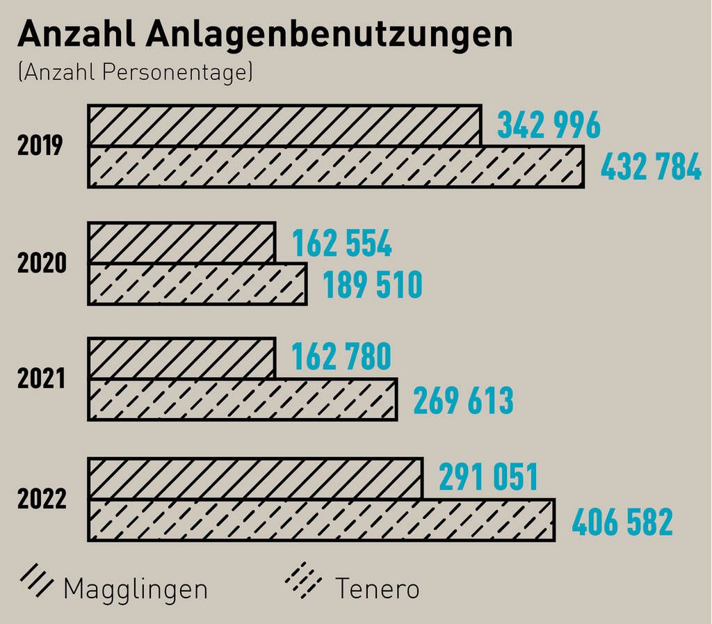 Im 1. Quartal des Berichtsjahrs war der Betrieb des Sportzentrums noch massgeblich durch die Corona-Pandemie geprägt. Die Anlagen konnten nur eingeschränkt genutzt werden. Die Belegungszahlen im ersten Quartal sind ein Abbild dieser ausserordentlichen Situation.