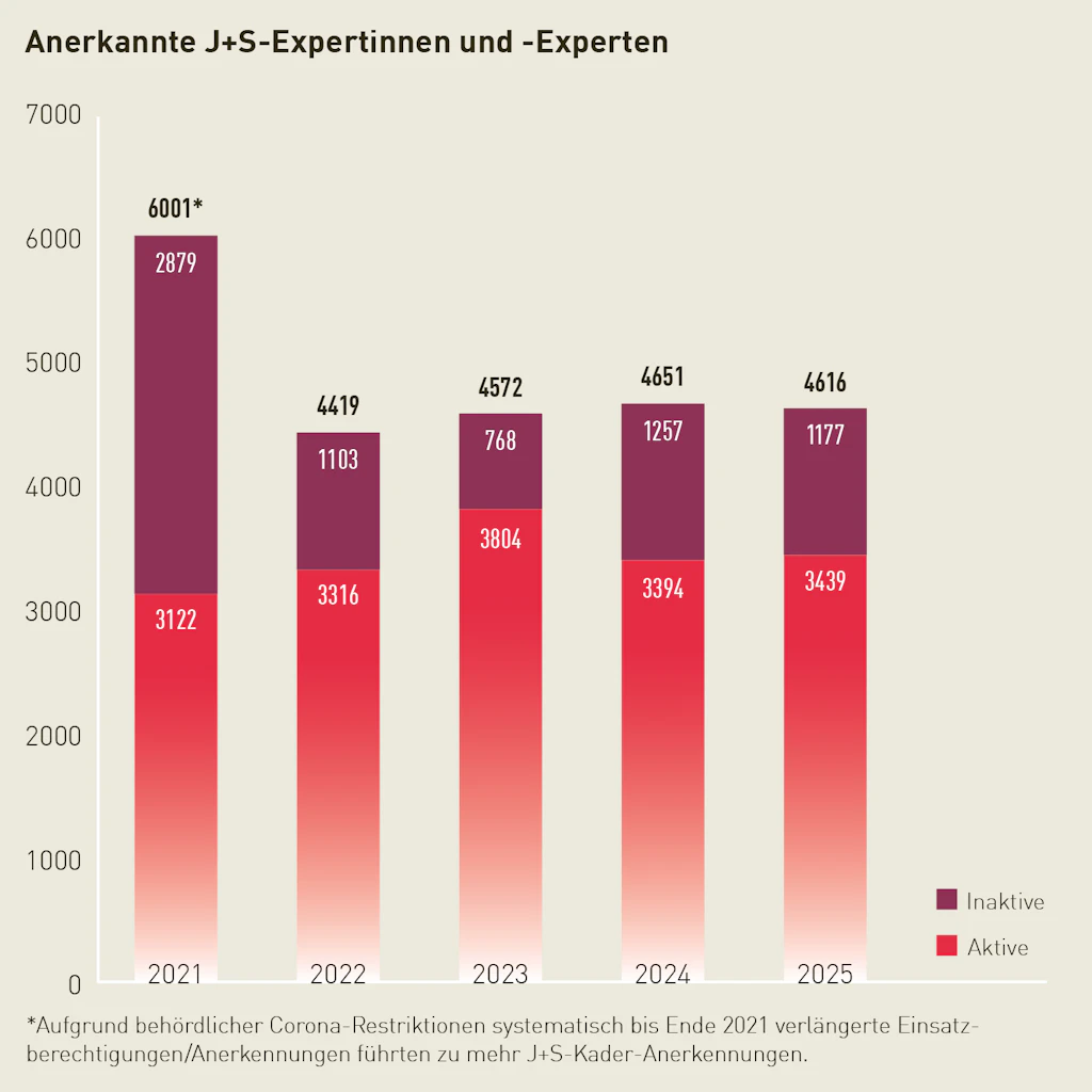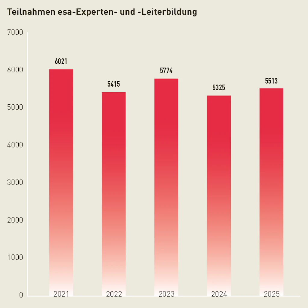 In der esa-Kaderbildung wurden 2025 über 5’500 Personen aus- und weitergebildet. Das Ausbildungsprogramm für Leitende im Erwachsenensport bleibt damit auf einem konstanten Niveau.
