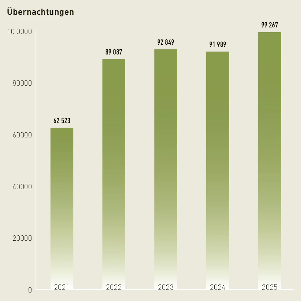 Das Nationale Sportzentrum Magglingen erzielte 2025 mit über 275’000 Verpflegungseinheiten eine neue Bestmarke. Im Oktober wurde ein Unterkunftsprovisorium mit 84 Betten in Betrieb genommen; insgesamt wurden rund 99’000 Übernachtungen verzeichnet.