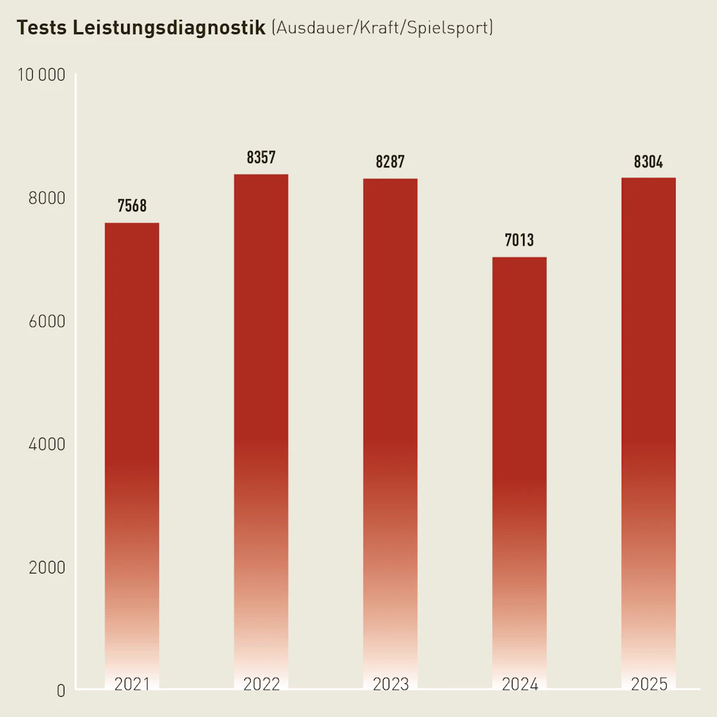 Die hervorragende Infrastruktur im Neubau Lärchenplatz ermöglicht angewandte Forschung und Dienstleistungen mit hoher Praxisrelevanz und Anwendungsorientierung. Daraus resultierte ein rekordhohes Aufkommen an Leistungstests in den Kraft- und Spielsportarten.