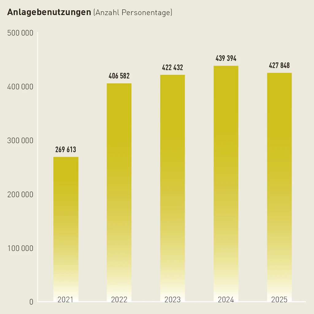 2025 erzielte das CST sehr erfreuliche Zahlen: 920 Kurse mit 38’518 Teilnehmenden, 154’617 Übernachtungen und 418’056 Mahlzeiten stehen zu Buche. Zahlreiche Schulen, Vereine und Verbände schätzen den Ort für polysportive Lager und Trainingscamps.