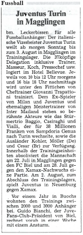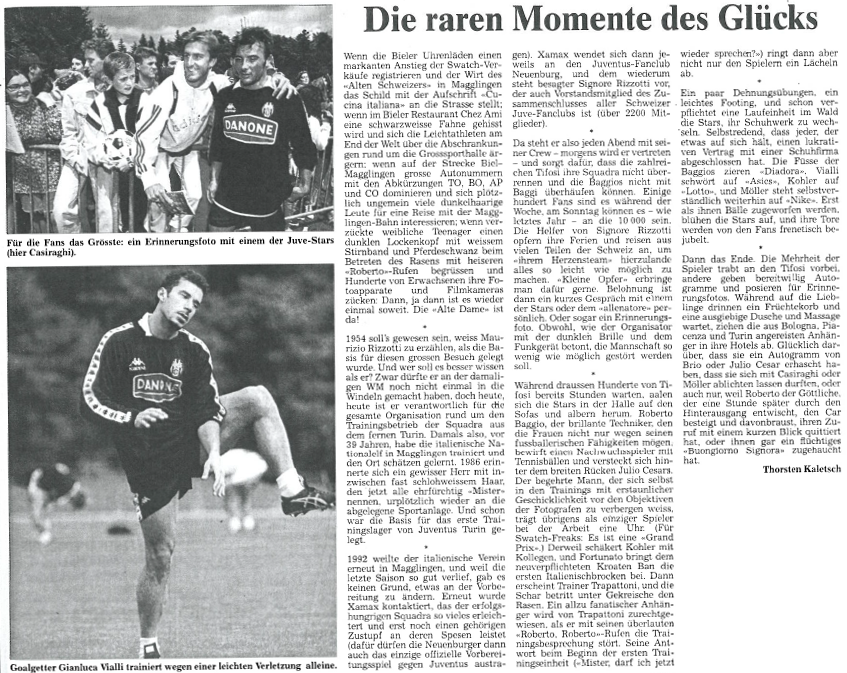 In den Jahren 1986, 1992 und 1993 pilgerten 10000 Fans nach Magglingen, um einen Blick auf die Stars von Juventus Turin im hiesigen Trainingslager zu werfen.
