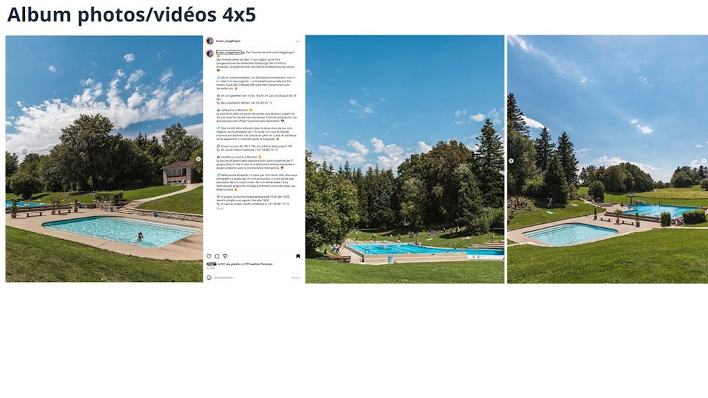 - Captions sont idéalement multilingue: DE – FR – IT – EN, si le contenu est disponible uniquement dans une langue le préciser (podcast en allemand)