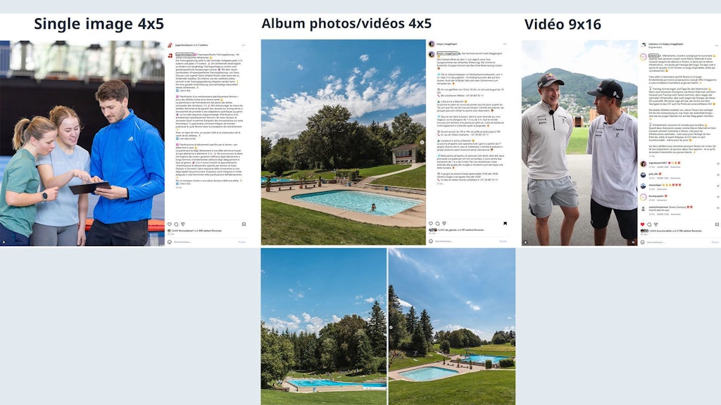 - Vidéos en 9x16 → exception: vidéo dans carrousel Instagram en 4x5, vidéo YouTube en 16x9