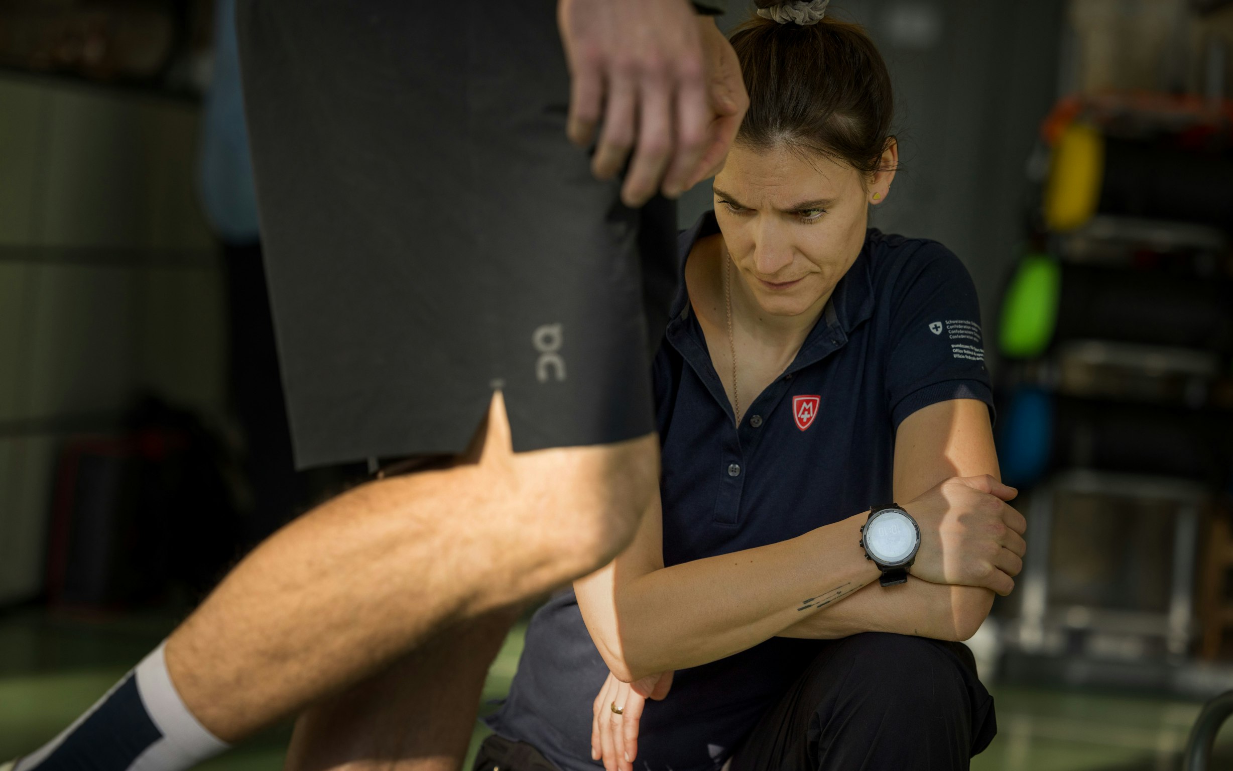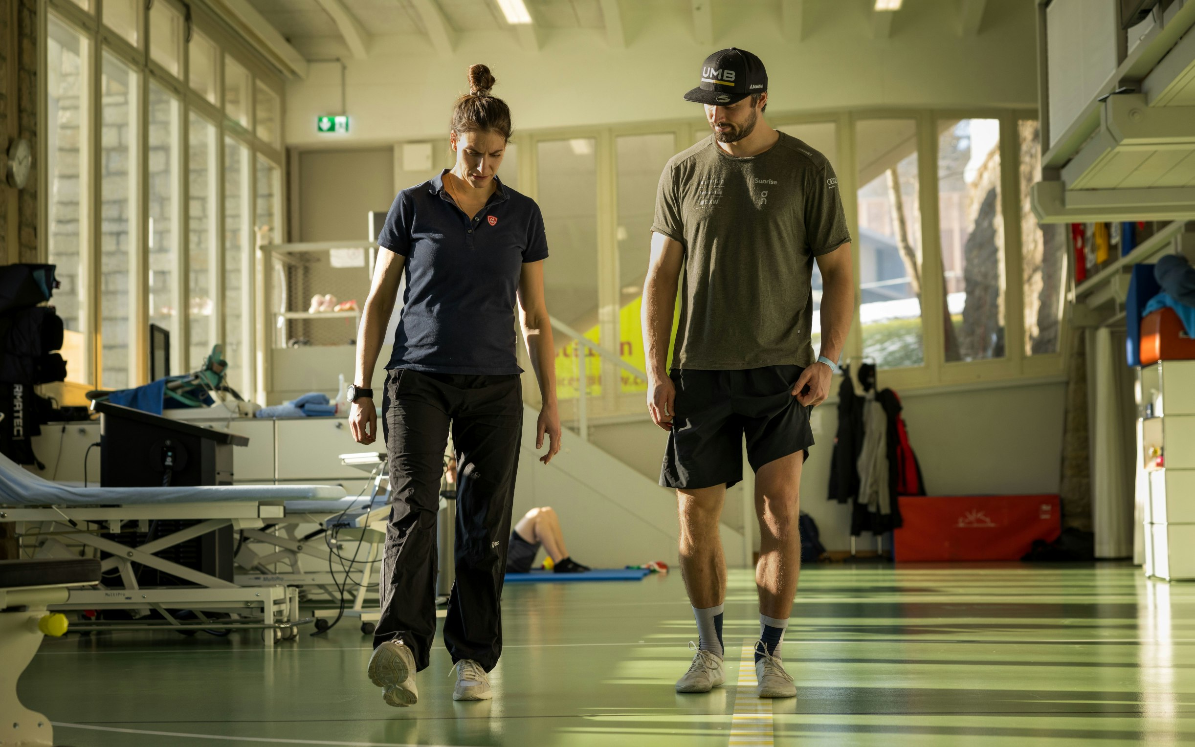 Ce récit enjoué reflète bien la bonne ambiance qui règne durant les séances de physiothérapie effectuées par l’athlète à Macolin. Une heure et demie durant, on rit, on plaisante, on blague – tout en travaillant dur. Le trentenaire, champion olympique de skicross 2022 et vainqueur du classement général de la Coupe du monde 2021-2022, et sa physiothérapeute Monique Schmid, sont de vieilles connaissances qui s’entendent à merveille.