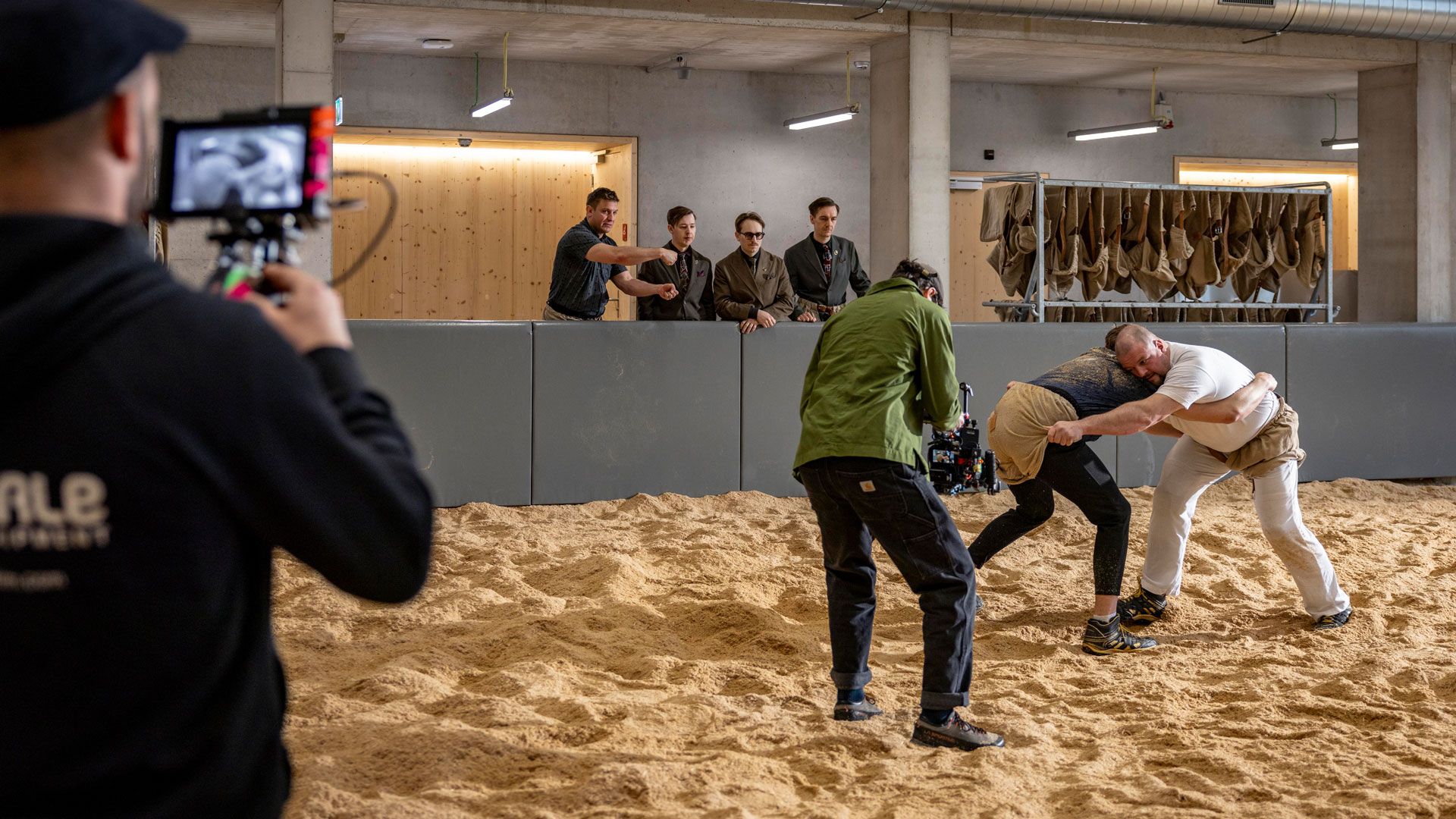 Le 3 mars 2025, une société de production zurichoise a fait à l’OFSPO une proposition très séduisante: «Nous tournons un clip pour le Concours Eurovision de la chanson (…). Le Centre sportif de Macolin, dont la réputation n’est plus à faire, serait un cadre fantastique pour présenter le sport suisse, et en particulier la lutte à la culotte, au public du monde entier.» Impossible pour l’OFSPO de résister à pareille demande! Quatre jours plus tard, deux productrices accompagnées du réalisateur Maximilian Speidel arrivaient à Macolin pour le repérage…