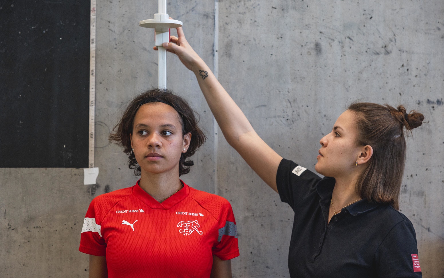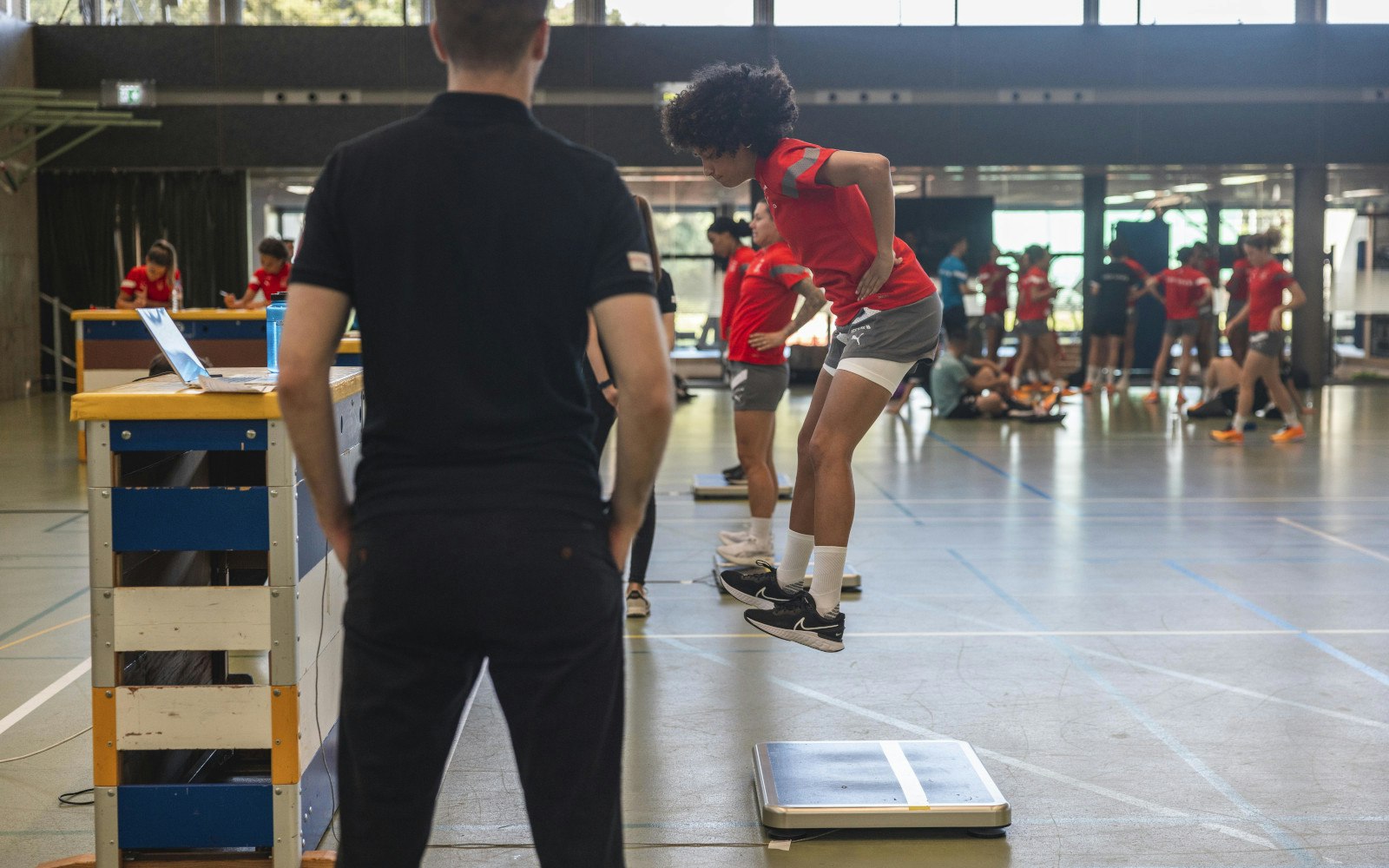 Différents tests permettant de mesurer la force de saut sur des plateformes ad hoc – et donc d’en savoir davantage sur l’explosivité de l’équipe entraînée par Inka Grings – sont réalisés par l’équipe de physiologie du sport Sports d’équipe dirigée par Markus Tschopp et Hélène Maystre, responsable du football féminin. Cette dernière explique: «Il est important pour les joueuses de connaître leur niveau d’explosivité. Ces tests leur montrent où mettre l’accent à l’entraînement.»