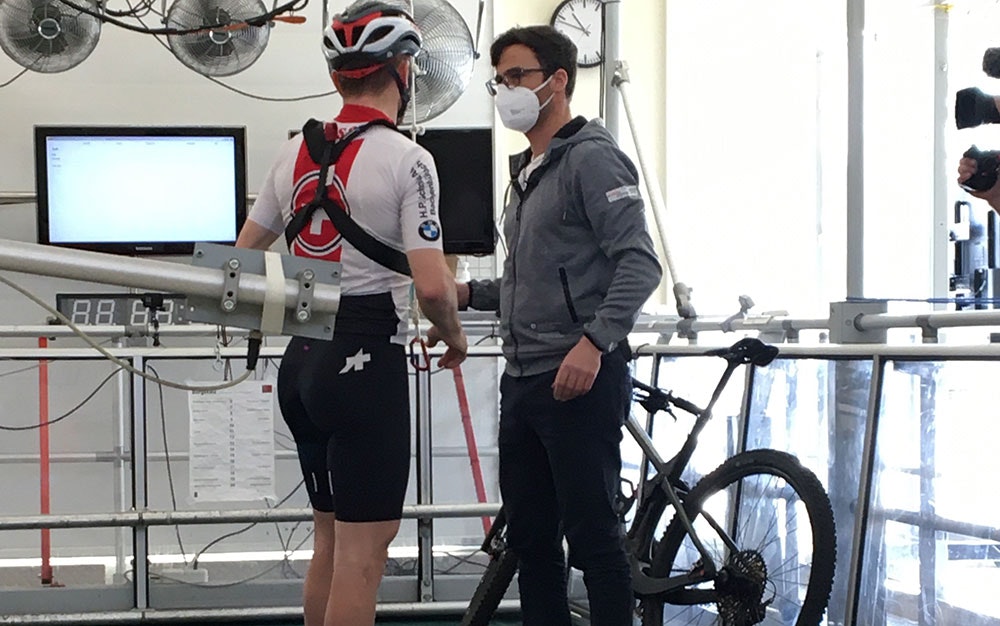 Zenger: Dans la soufflerie, l'athlète est positionnée sur une plateforme pivotante, ce qui permet de modifier l'angle du vent. Disposer de données sur la performance du matériel face à différents angles de vent permet d'envisager plusieurs situations. Au final, le but est de réduire la résistance au vent et d'obtenir une vitesse plus élevée pour une puissance donnée.