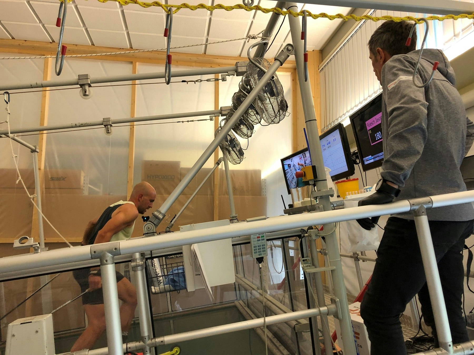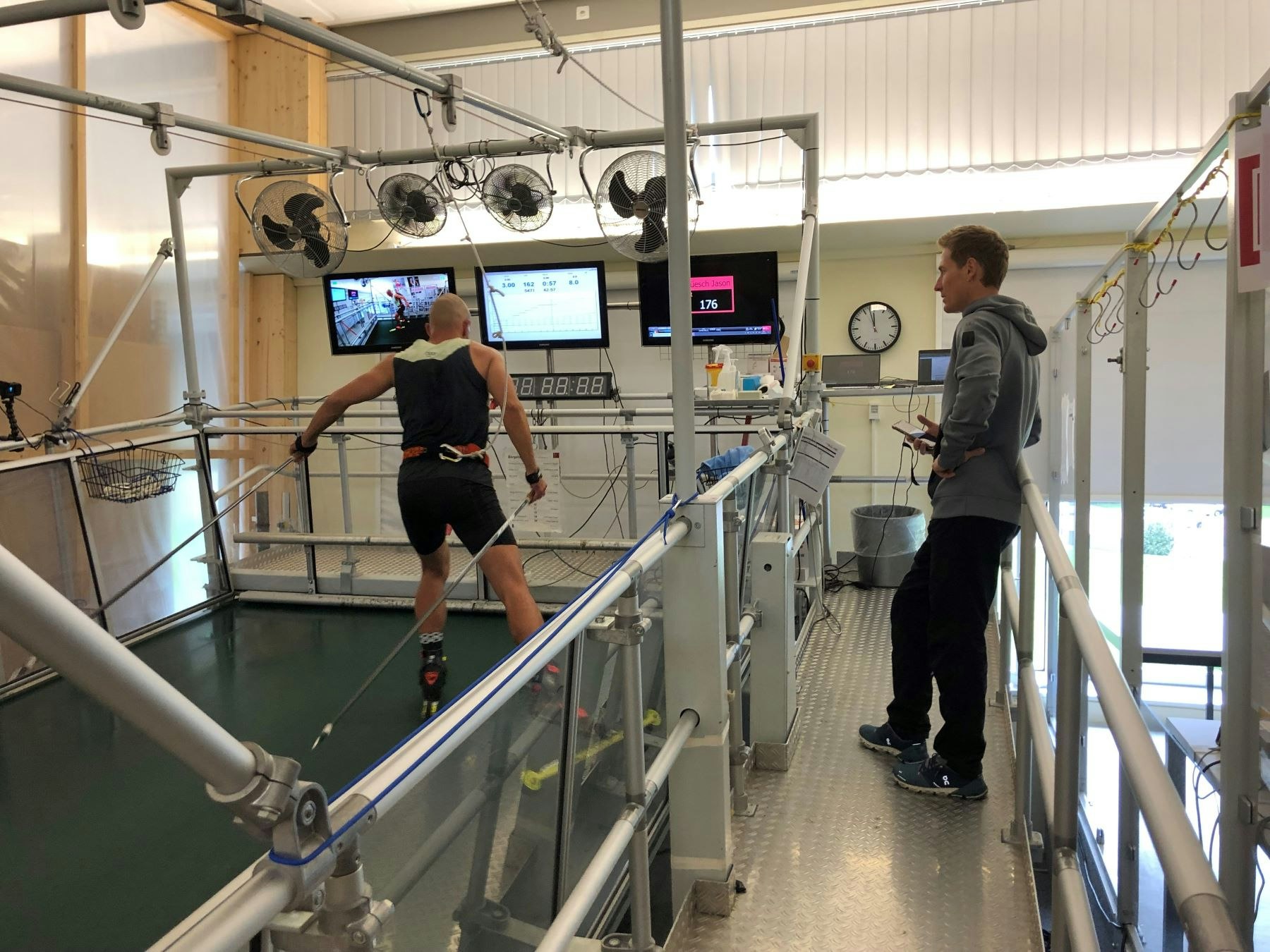 Test par paliers avec mesure de la lactatémie, test de la VO2max, test de poussée: les différents groupes d’entraînement de ski de fond qui se succèdent à Macolin sont examinés avec beaucoup d’attention, à chaque fois pendant deux jours, par l’équipe «Physiologie du sport Endurance», plus précisément par son responsable adjoint, Thomas Steiner, et les deux collaborateurs scientifiques Elias Bucher et Eva Hofmann. L’équipe en profite généralement pour soumettre les athlètes à d’autres tests, à l’image du diagnostic de la performance musculaire (MLD), de l’absorptiométrie biphotonique à rayons X (DEXA, méthode de mesure de la composition corporelle par rayons X) ou encore du contrôle de l’appareil locomoteur (physio-check).