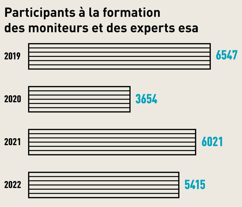 En 2022, le CST a accueilli 873 cours (+21 % par rapport à 2021) et 35 924 participants (+77 % par rapport à 2021); les nuitées ont atteint le chiffre de 140 691 (+67 % par rapport à 2021). Des résultats similaires à ceux d’avant la pandémie.