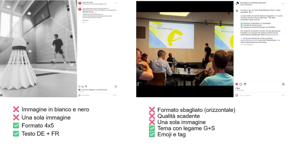 Collab-Post con gli account UFSPO, SUFSM e G+S devono essere concordati in anticipo con socialmedia@baspo.admin.ch per definire gli elementi seguenti:
