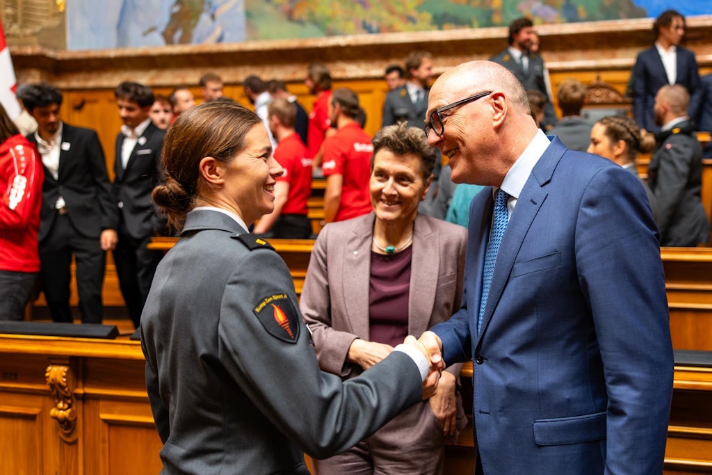 Une Suisse que vous, chers invités, mettez brillamment en lumière par vos performances. À travers le monde, l’hymne national suisse résonne et notre drapeau s’élève avec fierté. Ces moments témoignent de notre excellence et offrent une vitrine exceptionnelle pour notre pays sur la scène internationale. Ils renforcent également notre cohésion nationale. Car le sport unit. Par vos succès, vous fédérez la Suisse entière derrière vous, un rôle crucial en ces temps marqués par une polarisation croissante et des fractures sociales.