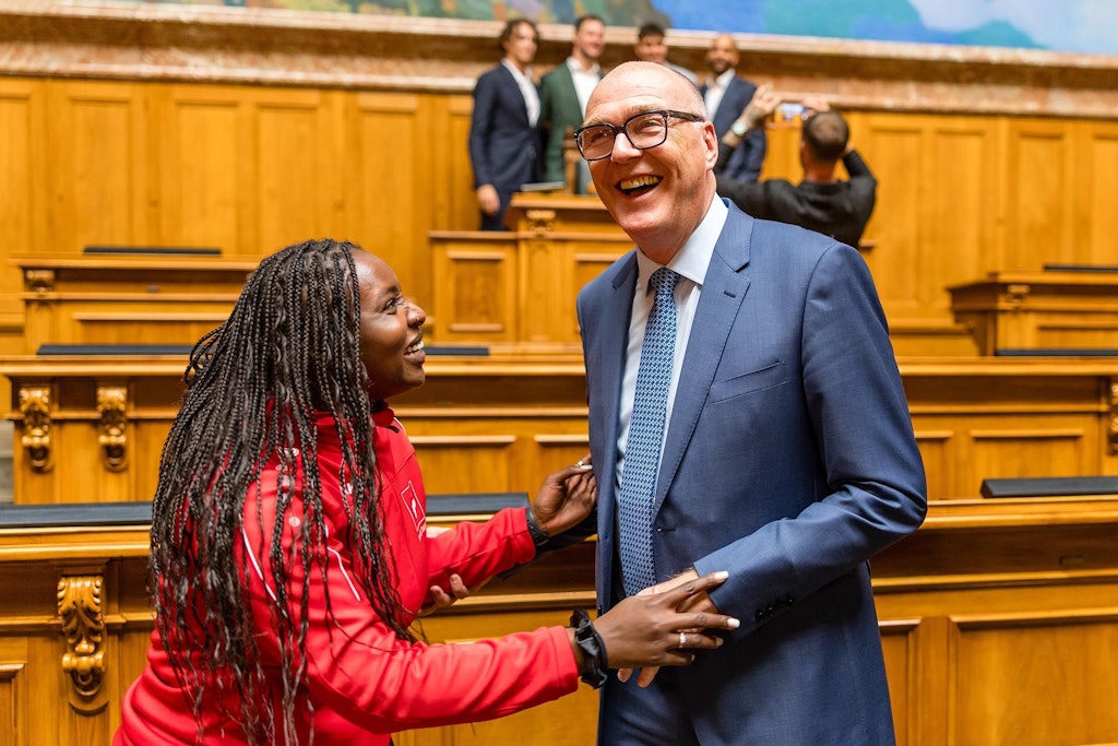 Wenn ich etwas vorausschaue und die vielen Sportgrossanlässe sehe, die wir in der Schweiz in den nächsten Jahren organisieren dürfen, freue ich mich sehr darauf. Einerseits, weil ich daran glaube, dass sich Ihre harte Arbeit und Vorbereitung ausbezahlen und in weiteren sportlichen Erfolgen münden wird. Und andererseits auch, weil ich überzeugt bin, dass wir als Schweiz hervorragende Gastgeber und Organisatorinnen sein werden. Insbesondere für all jene Athletinnen und Athleten, die bei uns zuhause im eigenen Land starten dürfen, wird das etwas ganz Spezielles. Der Schweizer Sport darf optimistisch in die Zukunft gehen.