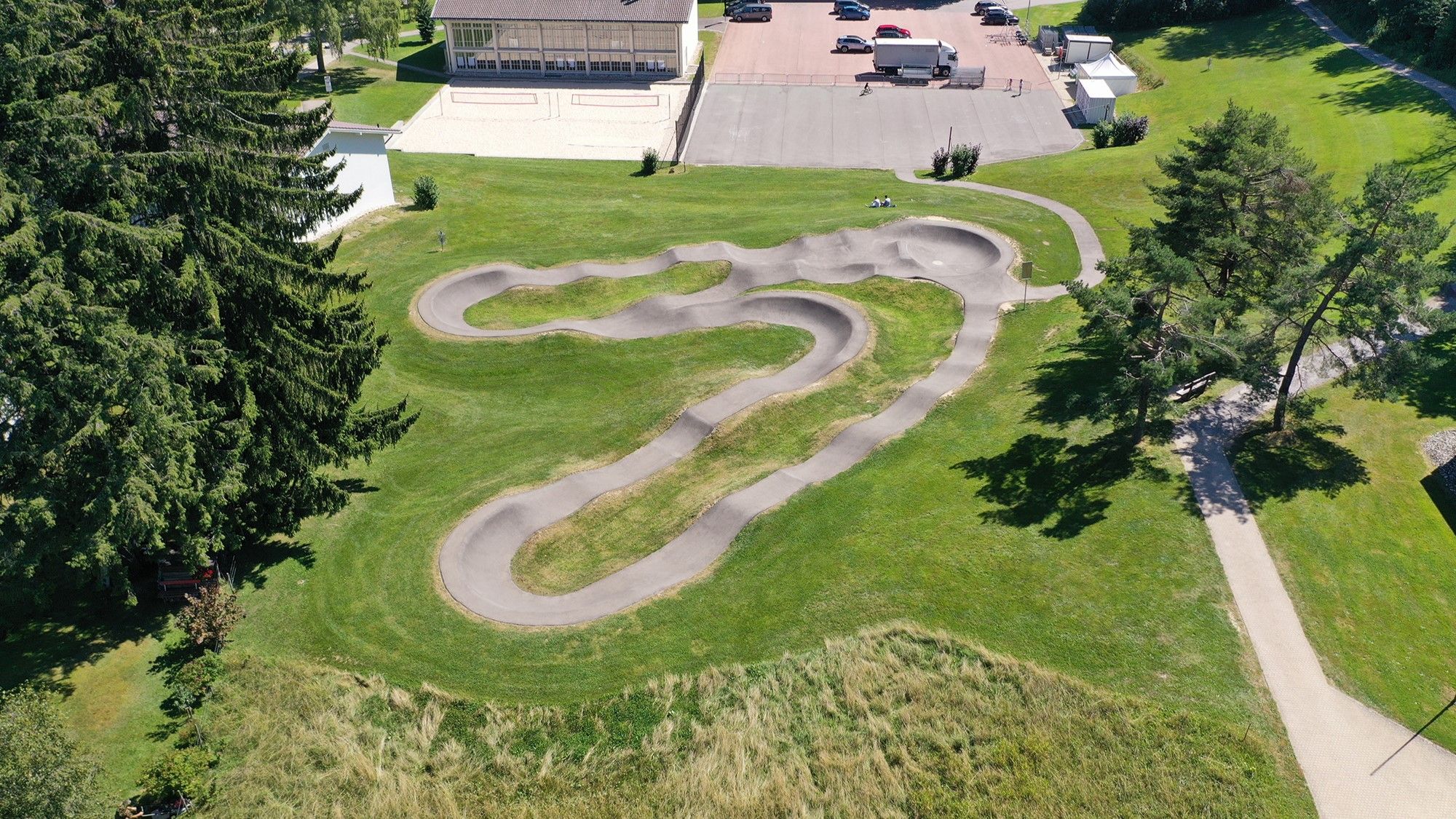 Il pumptrack è un circuito da percorrere con qualsiasi mezzo a due ruote non motorizzato: mountainbike, BMX, kickboard, skateboard, ecc. La pista asfaltata, con i suoi numerosi dossi, segue il più possibile le caratteristiche naturali della topografia.