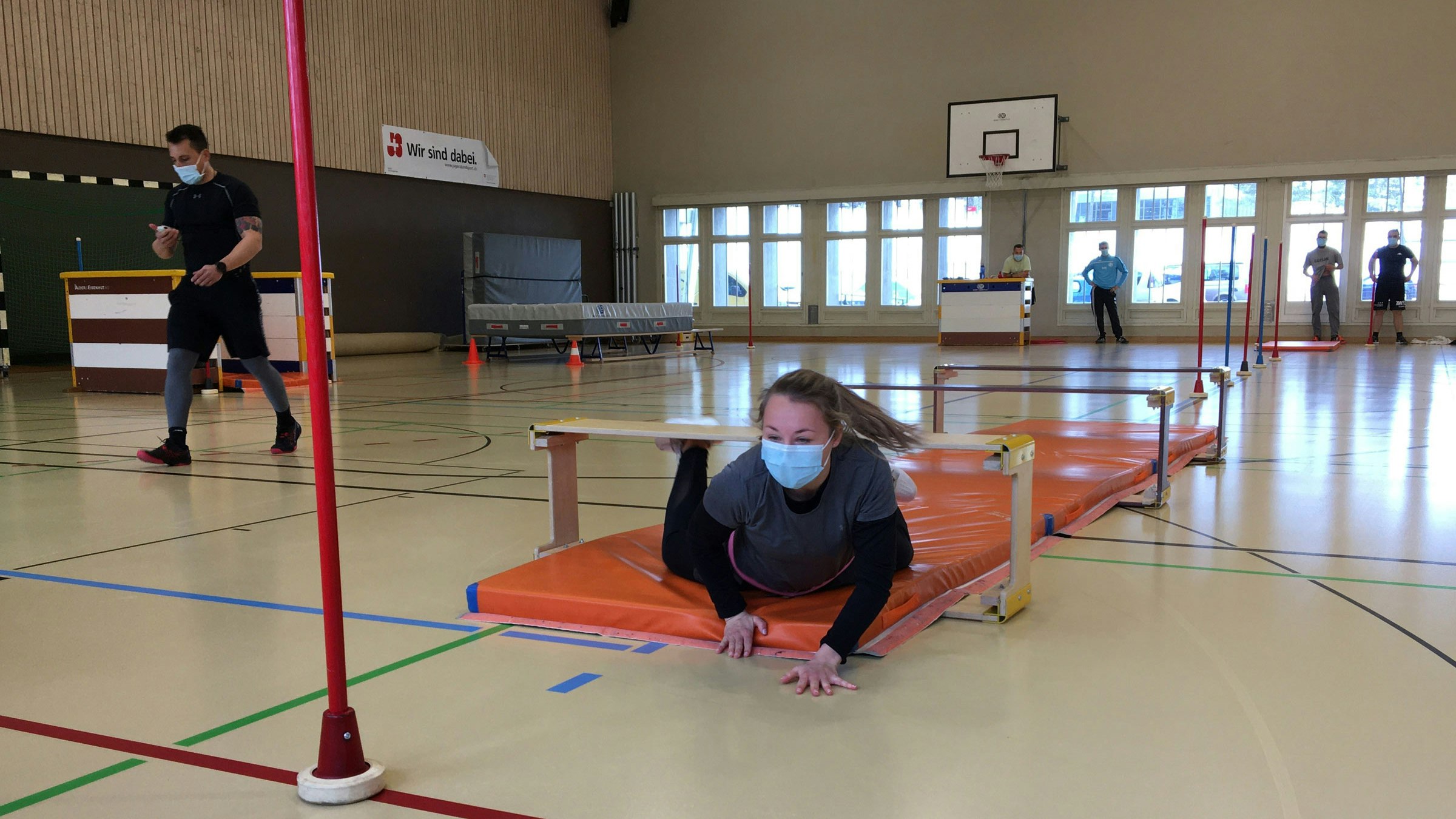 Nonostante Corona, i corsi di base per i monitori di sport militare-istruttori si svolgono a Macolin, anche se non con il solito numero di partecipanti. Un corso di base si è tenuto a metà marzo con un totale di 9 partecipanti, tra cui un ufficiale di polizia, tutti avevano precedentemente completato il corso per monitori di sport militare. «Normalmente ci sono più partecipanti, ecco perché ora tutti devono prendere parte agli esercizi di gioco, anche gli insegnanti di sport che sono lì come istruttori», Patrick Flück sottolinea la situazione speciale. A Macolin si svolgono normalmente fino a 20 corsi di formazione di base e di perfezionamento all'anno; ora sono meno della metà. Anche le giornate fitness per i militari professionisti e gli impiegati civili sono stati cancellate a causa di Corona. All'ultimo corso, tra le altre cose, erano in programma l'allestimento, l'istruzione e il corretto completamento della pista ad ostacoli in palestra così come il percorso di condizione e coordinazione. Abilità, agilità e forza erano necessarie per superare gli ostacoli. Da un lato, bisognava aggirare i paletti nel modo più veloce e impeccabile possibile con la palla colpendola e conducendola con i piedi, ma anche superare gli ostacoli nel miglior modo possibile.