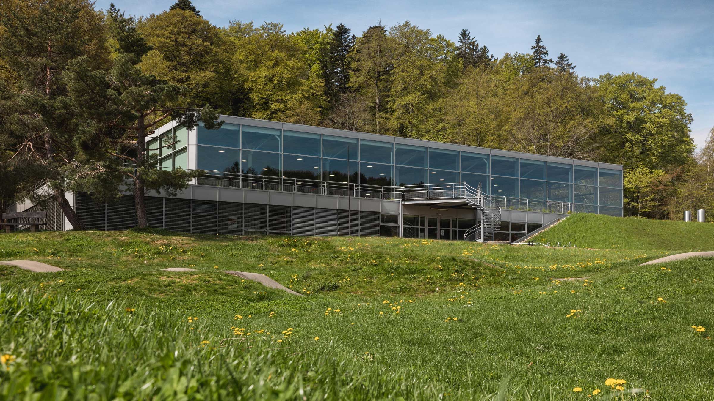 Da più di quarant'anni l'edificio, perfettamente integrato nel paesaggio, sorge ai margini della foresta tra la vecchia palestra e l'area End der Welt. Progettata dall'architetto biennese Max Schlup e inaugurata nell'autunno del 1982, la palestra del giubileo è diventata il quartier generale delle migliori ginnaste artistiche e dei migliori ginnasti artistici del nostro Paese nonché la sede dei corsi di formazione. Ed è qui, presso l'Ufficio federale dello sport (UFSPO), che la Federazione svizzera di ginnastica (FSG) gestisce il suo centro nazionale di prestazione.