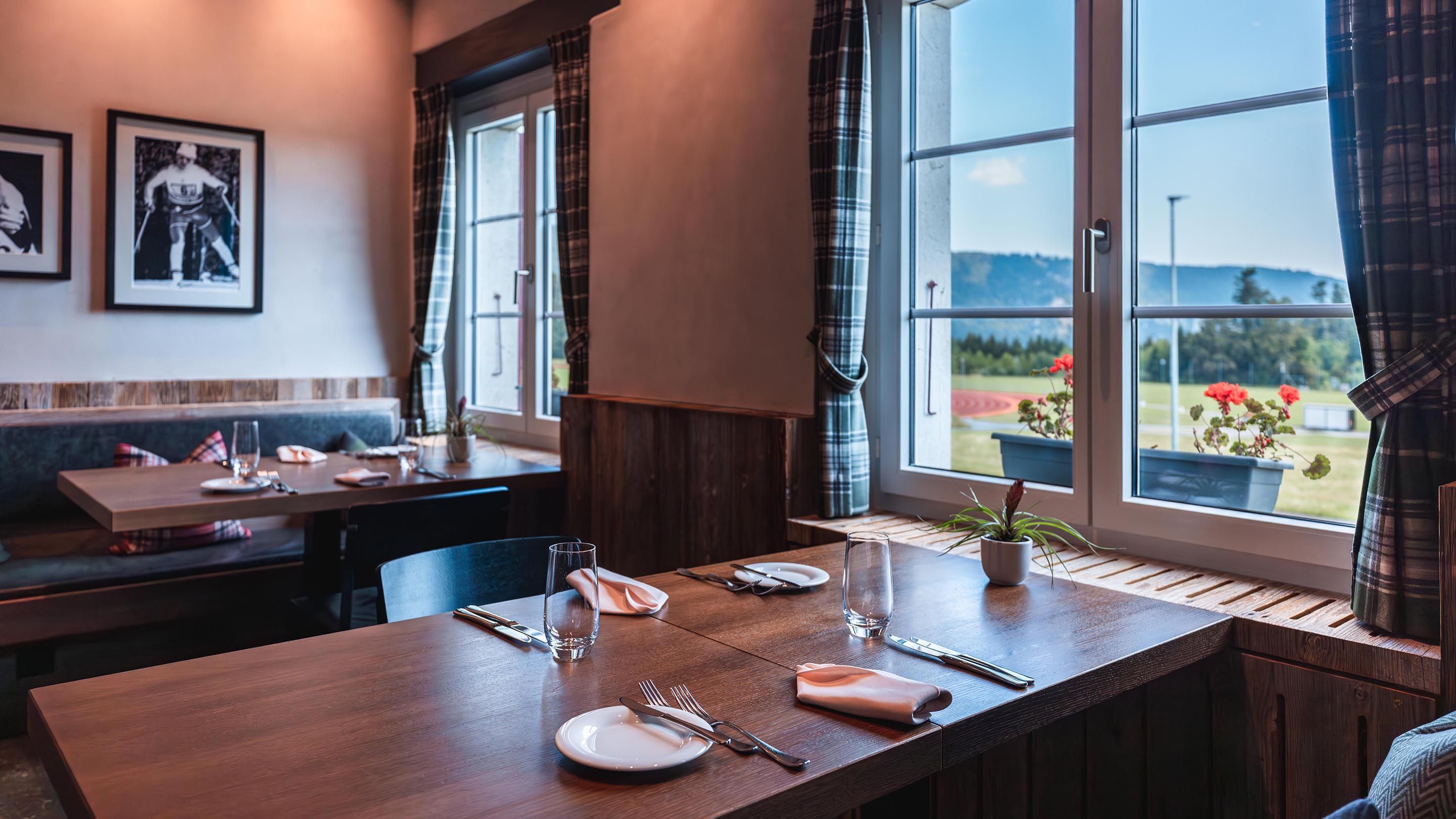 La giovane brigata del ristorante à la carte End der Welt coniuga regionalità, originalità e prodotti certificati. L'attenzione è rivolta ai prodotti di origine svizzera, la cui qualità stuzzica il palato di ogni buongustaio.