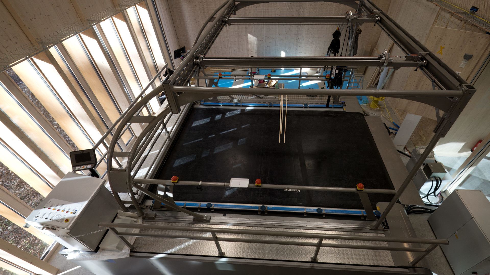 Potente, massiccio e imponente: il nuovissimo tapis roulant della «h/p/cosmos» non passa sicuramente inosservato. A confermarlo anche i dati impressionanti: 4,5 x 3 m di superficie di corsa, un peso che supera 11 500 kg, una velocità del nastro che sfiora i 50 km/h e una pendenza regolabile fino al 25 per cento. A fine gennaio il nuovo edificio «Lärchenplatz» si è dotato di un vero e proprio colosso in termini di dimensioni: non per niente è chiamato ufficialmente «The Beast».