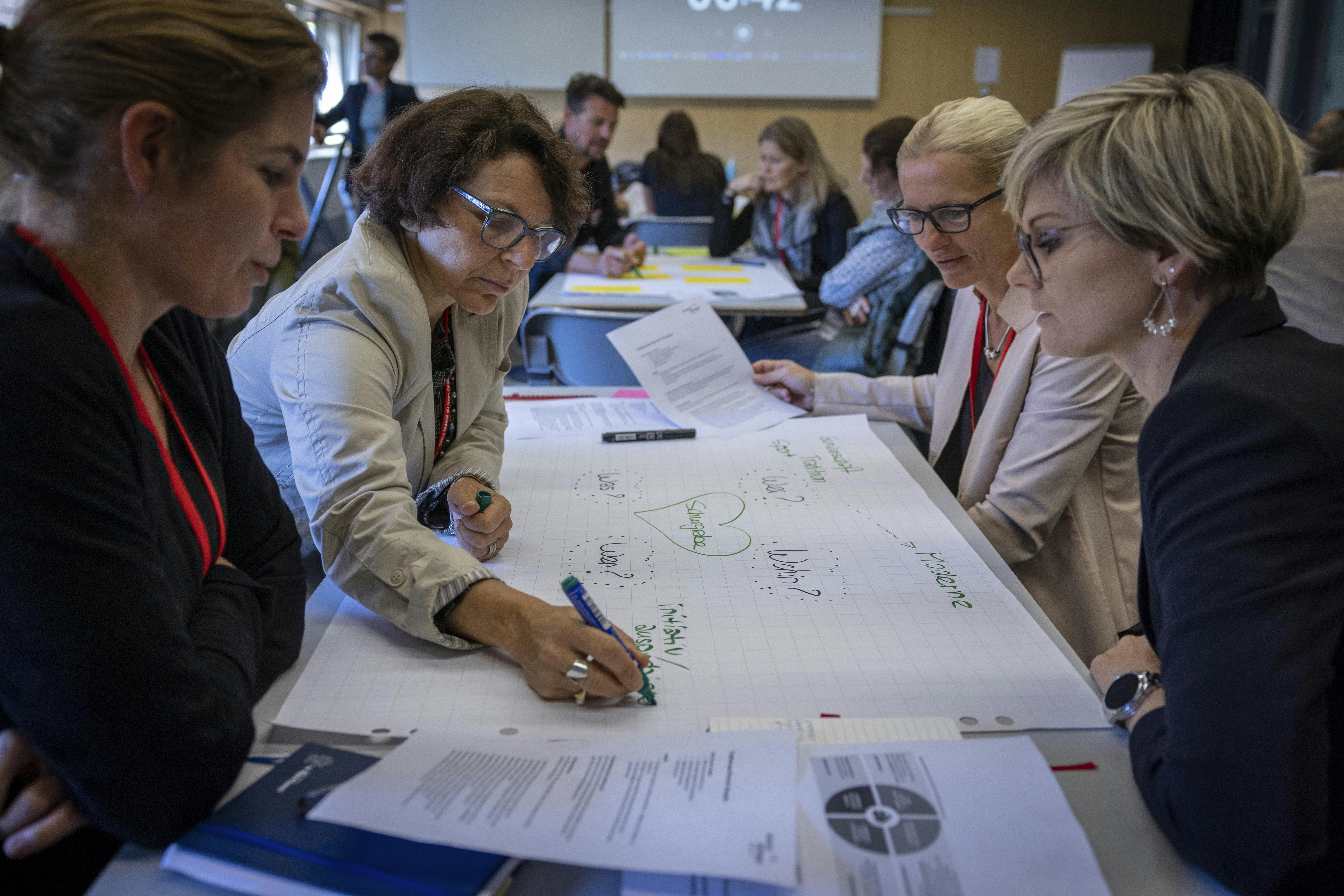 La seconda discussione fra esperti ha dato la parola anche a Sandra Felix, vicedirettrice dell'UFSPO, che, insieme a Maja Neuenschwander, responsabile del progetto «Donna e sport d’elite» di Swiss Olympic, Béatrice Wertli, direttrice della Federazione svizzera di ginnastica, e Werner Augsburger, funzionario sportivo, ha esplorato il ruolo delle donne nelle posizioni di leadership.